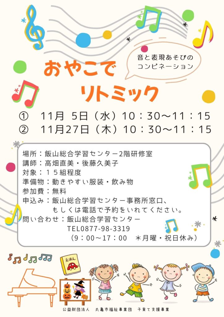 おやこでリトミック 申込受付中! 2025年10月23日 最終更新日時 : 2025年10月23日 manabee-l 歩けるようになったお子さんと一緒に楽しみましょう! ① 11/5(水)定員まで残り9組! ㉖ 11/27(木)定員まで残り13組!